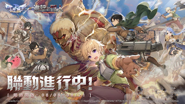 本次联动限定时装、坐骑及宠物让玩家可在游戏内感受经典场景,通过参与「自由之战」PVP玩法及「补给令」获得「作战秘笺」和「高级作战秘笺」,到兑换商店进行兑换即可。 在各式各样的新增道具当中,最特别的就是身型为RO角色2倍大小、Q萌感满满的超大型巨人宠物,还有速度为5的「车力巨人」坐骑。 想成为调查兵团的一员吗? 想要驾驶让人羡慕的超帅坐骑,遨游米德加尔特大陆上吗? 8月8日开始的《RO仙境传说:新世代的诞生》x《进击的巨人》联动活动,千万不能错过。