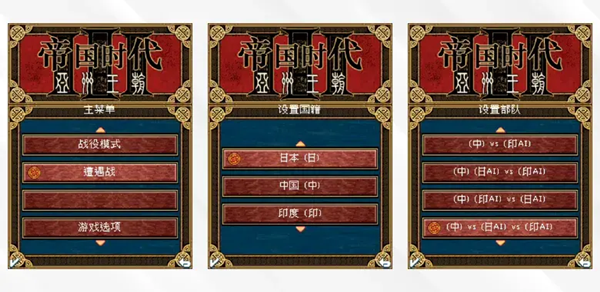 游戏模式、国家选择、对战方式选择