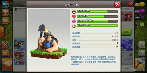 说到地面部队就不能不提现在的强势兵种,矿工流就算是强势的兵种之一,其实在我看来,如果你到了10本,就应该先升满矿工,打资源矿工流敢说第二,在10本的范围里还没有兵种敢说第一,有的小伙伴可能会问,哥布林对资源的伤害有加成啊!但是你看看现在的阵型,有几个是资源外置的,特别是黑油,都是在阵型的最中心,哥布林你有可能拿采集器,但是拿黑有难度很大,所以矿工是拿黑油的最好兵种。