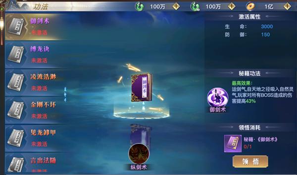 可使用秘籍道具领悟功法,领悟对应的功法后,可继续使用秘籍碎片升级功法。