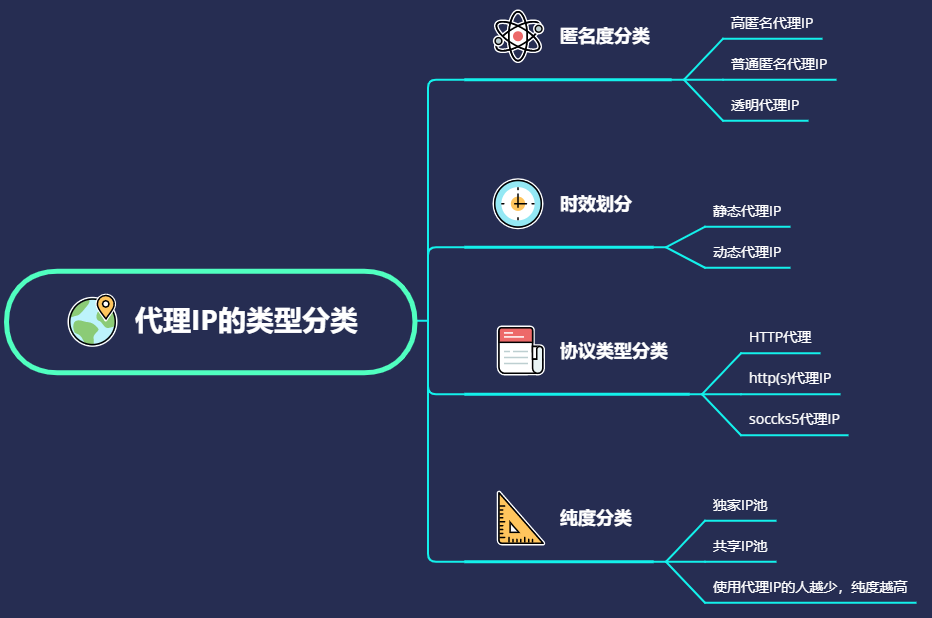 关于代理ip,其实种类也是有很多,按照不同的类别可以延伸出多种分类。